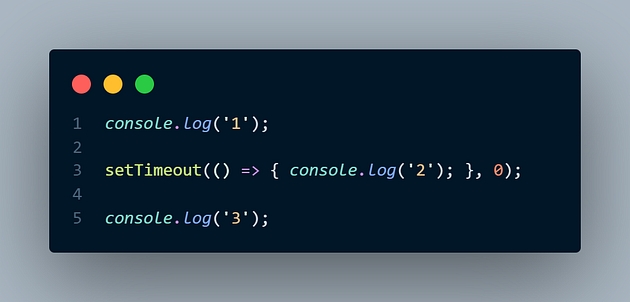 1 2 3 or something else? setTimeout with 0-millisecond delay is invoked, there won’t be any delay. So 2 should be printed next right?