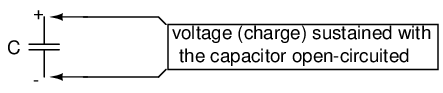 Just as Isaac Newton's first Law of Motion ("an object in motion tends to stay in motion; an object at rest tends to stay at rest") describes the tendency of a mass to oppose changes in velocity, we can state a capacitor's tendency to oppose changes in voltage as such: "A charged capacitor tends to stay charged; a discharged capacitor tends to stay discharged." Hypothetically, a capacitor left untouched will indefinitely maintain whatever state of voltage charge that its been left it. Only an outside source (or drain) of current can alter the voltage charge stored by a perfect capacitor: