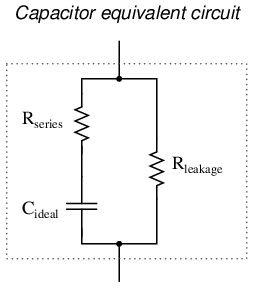 Equivalent circuit: Since the plates in a capacitor have some resistance, and since no dielectric is a perfect insulator, there is no such thing as a "perfect" capacitor. In real life, a capacitor has both a series resistance and a parallel (leakage) resistance interacting with its purely capacitive characteristics: