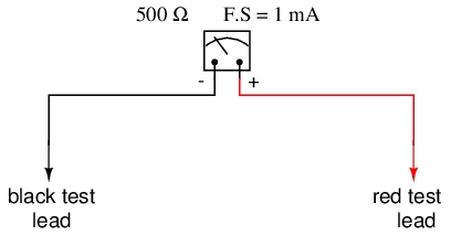 Taking the same meter movement as the voltmeter example, we can see that it would make a very limited instrument by itself, full-scale deflection occurring at only 1 mA: