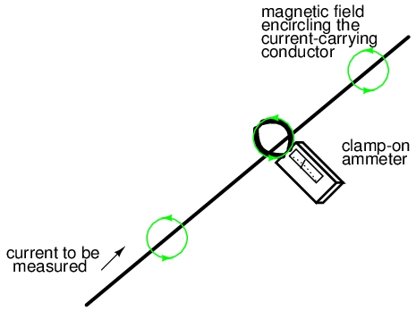 The design of digital "movements" is beyond the scope of this chapter, but mechanical meter movement designs are very understandable. Most mechanical movements are based on the principle of electromagnetism: that electric current through a conductor produces a magnetic field perpendicular to the axis of electron flow. The greater the electric current, the stronger the magnetic field produced. If the magnetic field formed by the conductor is allowed to interact with another magnetic field, a physical force will be generated between the two sources of fields. If one of these sources is free to move with respect to the other, it will do so as current is conducted through the wire, the motion (usually against the resistance of a spring) being proportional to strength of current.
