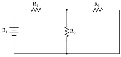 To analyze the above circuit, one would first find the equivalent of R2 and R3 in parallel, then add R1 in series to arrive at a total resistance. Then, taking the voltage of battery B1 with that total circuit resistance, the total current could be calculated through the use of Ohm's Law (I=E/R), then that current figure used to calculate voltage drops in the circuit. All in all, a fairly simple procedure.