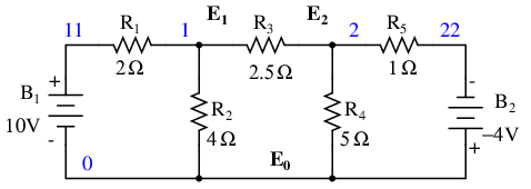 At this point, we could take these voltages and determine resistor currents through the repeated use of Ohm's Law (I=E/R):