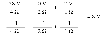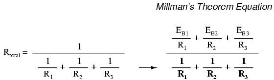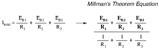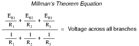 Now that we've covered Thevenin and Norton source equivalencies, we have the tools necessary to understand Millman's equation. What Millman's equation is actually doing is treating each branch (with its series voltage source and resistance) as a Thevenin equivalent circuit and then converting each one into equivalent Norton circuits.