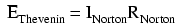 Thevenin voltage is equal to Norton current times Norton resistance.