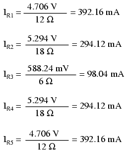 Since the resistor currents are the same as the previous values, the resistor voltages will be identical and need not be calculated again.