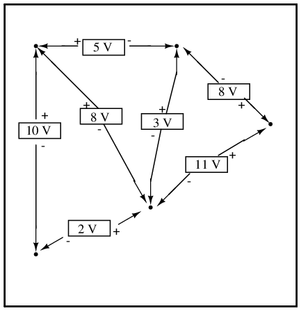 Try any order of steps from any terminal in the above diagram, stepping around back to the original terminal, and you'll find that the algebraic sum of the voltages always equals zero.
