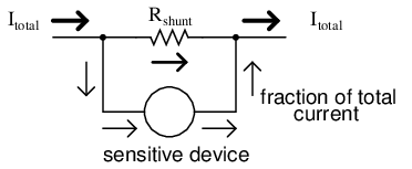 Current divider circuits also find application in electric meter circuits, where a fraction of a measured current is desired to be routed through a sensitive detection device. Using the current divider formula, the proper shunt resistor can be sized to proportion just the right amount of current for the device in any given instance: