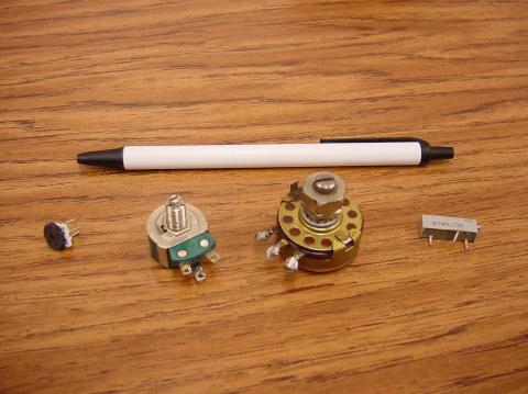 Shown here are several small potentiometers of the kind commonly used in consumer electronic equipment and by hobbyists and students in constructing circuits: