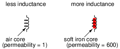 CORE MATERIAL: All other factors being equal, the greater the magnetic permeability of the core which the coil is wrapped around, the greater the inductance; the less the permeability of the core, the less the inductance.