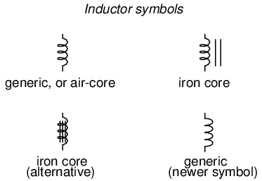 The schematic symbol for an inductor, like the capacitor, is quite simple, being little more than a coil symbol representing the coiled wire. Although a simple coil shape is the generic symbol for any inductor, inductors with cores are sometimes distinguished by the addition of parallel lines to the axis of the coil. A newer version of the inductor symbol dispenses with the coil shape in favor of several "humps" in a row: