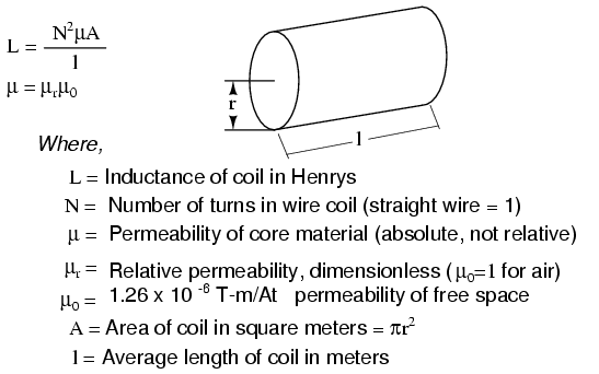 An approximation of inductance for any coil of wire can be found with this formula: