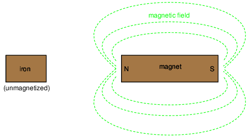 The previously unmagnetized iron becomes magnetized as it is brought closer to the permanent magnet. No matter what pole of the permanent magnet is extended toward the iron, the iron will magnetize in such a way as to be attracted toward the magnet: