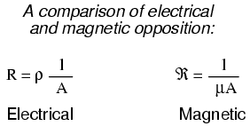 And, given that permeability is inversely analogous to specific resistance, the equation for finding the reluctance of a magnetic material is very similar to that for finding the resistance of a conductor: