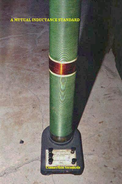 The device shown in the above photograph is a kind of transformer, with two concentric wire coils. It is actually intended as a precision standard unit for mutual inductance, but for the purposes of illustrating what the essence of a transformer is, it will suffice. The two wire coils can be distinguished from each other by color: the bulk of the tube's length is wrapped in green-insulated wire (the first coil) while the second coil (wire with bronze-colored insulation) stands in the middle of the tube's length. The wire ends run down to connection terminals at the bottom of the unit. Most transformer units are not built with their wire coils exposed like this.