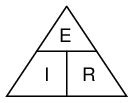 Ohm's Law is a very simple and useful tool for analyzing electric circuits. It is used so often in the study of electricity and electronics that it needs to be committed to memory by the serious student. For those who are not yet comfortable with algebra, there's a trick to remembering how to solve for any one quantity, given the other two. First, arrange the letters E, I, and R in a triangle like this: