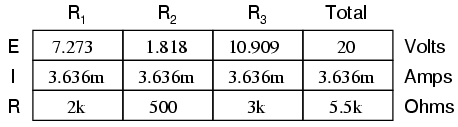 This step of the analysis tells us that the voltage across the load terminals (same as that across resistor R2) will be 1.8182 volts with no load connected. With a little reflection, it should be clear that this will be our final voltage across the capacitor, seeing as how a fully-charged capacitor acts like an open circuit, drawing zero current. We will use this voltage value for our Thevenin equivalent circuit source voltage.