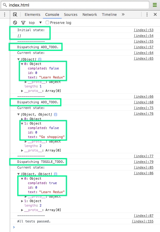 If we run these tests [in the browser], they will fail because we have not even begun to implement the reducer. We are going to start by checking the action type. If the action type is INCREMENT