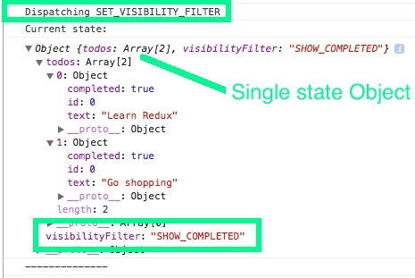 The first principal to learn in Redux is that you are going to represent your whole application ("State") as a single JavaScript Object. All changes and mutations to the state in Redux are explicit so it is possible to keep track of all of them.