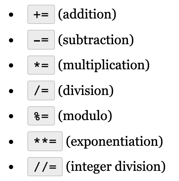 ++and--in Python, the only shorthand operators are: