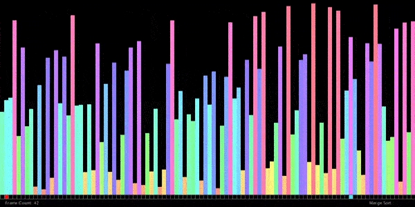 The largest values are captured, put into motion in the direction defined by the desired sort (ascending right now), and traverse the array until they arrive at their end destination