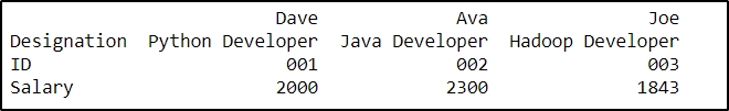 As you have seen previously, I have created a nested dictionary containing employee names and their details mapped to it. Now to make a clear table out of that, I will make use of the pandas library in order to put everything as a dataframe.