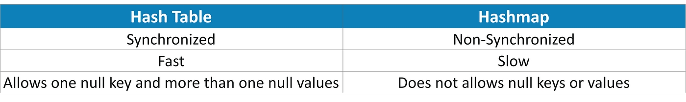Moving ahead, let’s see the difference between the hash table and hashmap in Python.