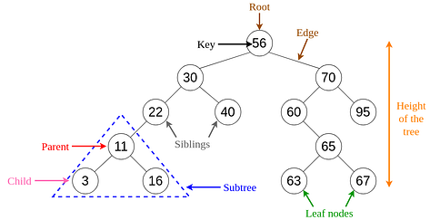 Fig 6. Visualization of Basic Terminology of Trees (Image by author)