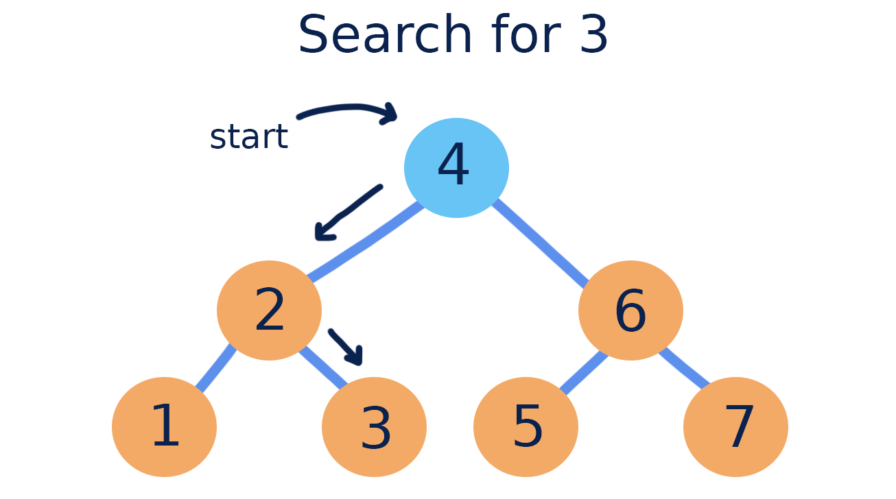 Binary search trees are called āsearch treesā because they make searching for a certain value more efficient than in an unordered tree. In an ideal binary search tree, we do not have to visit every node when searching for a particular value.