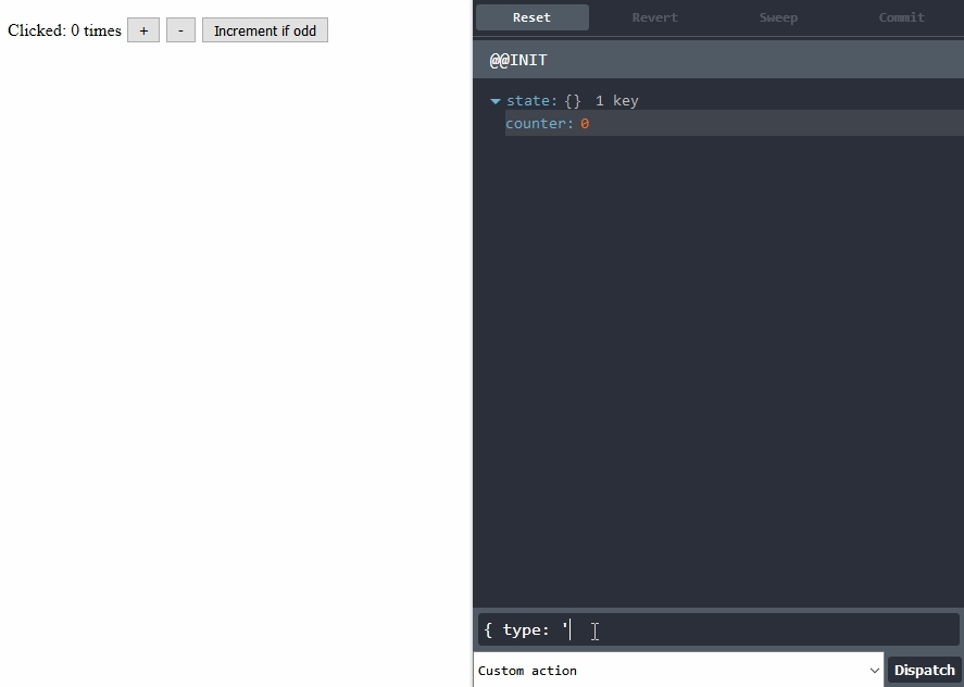 Try clicking on actions in the log, or changing some code inside the reducers. You should see the action log re-evaluate the state on every code change.