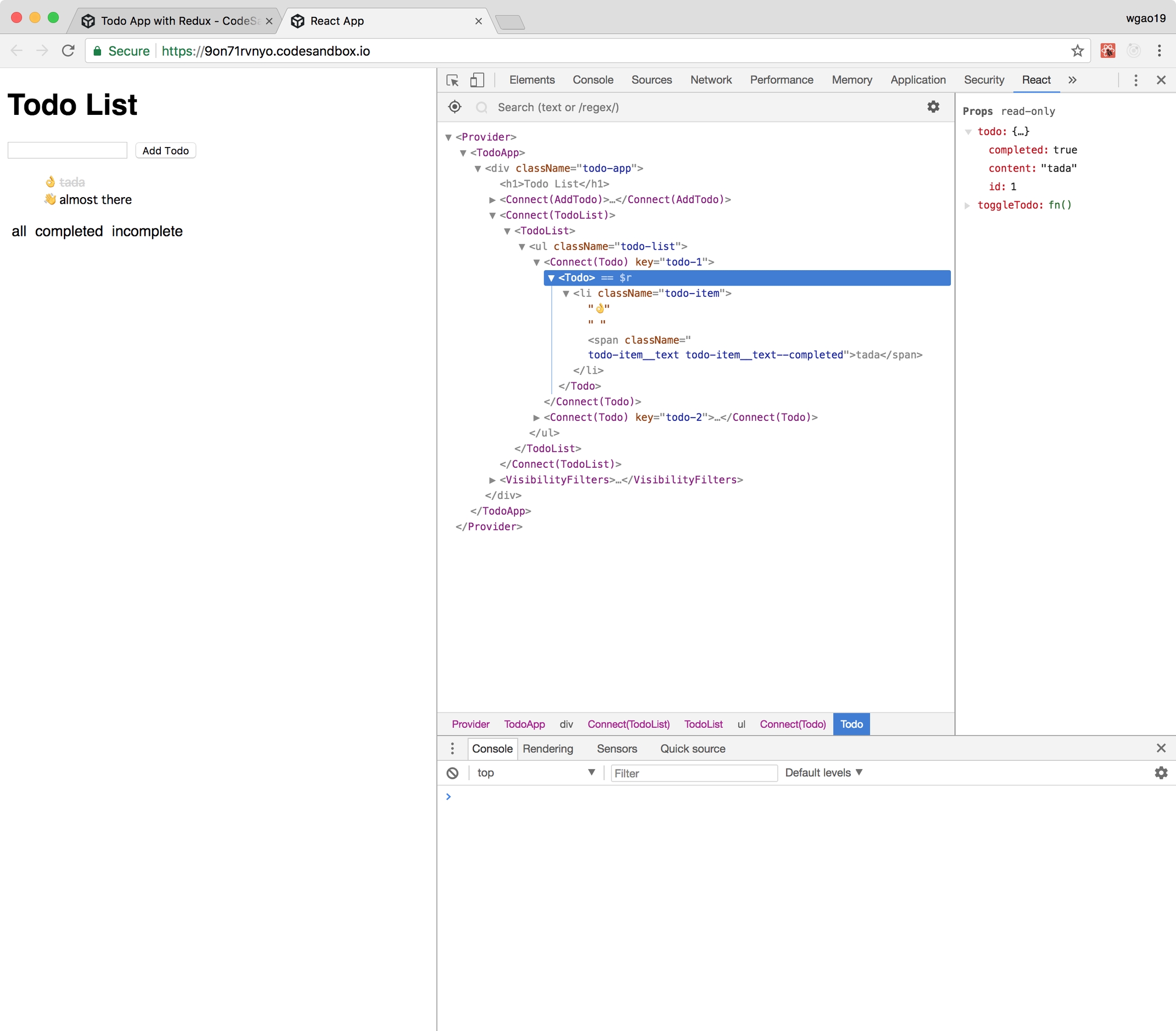 Now let’s connect the rest of our <TodoApp />