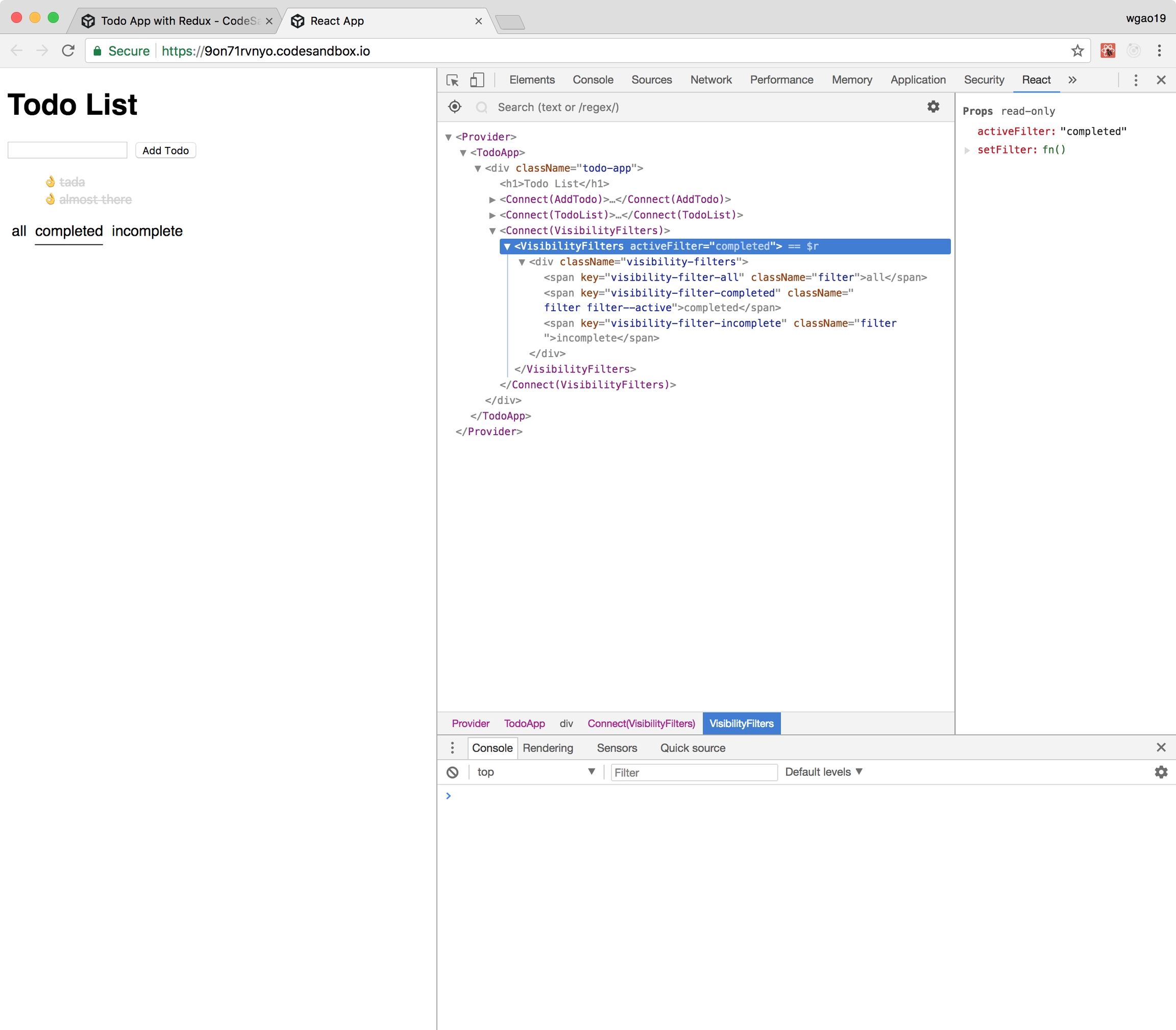 component to filter todos according to the active filter. Previously the mapStateToProps