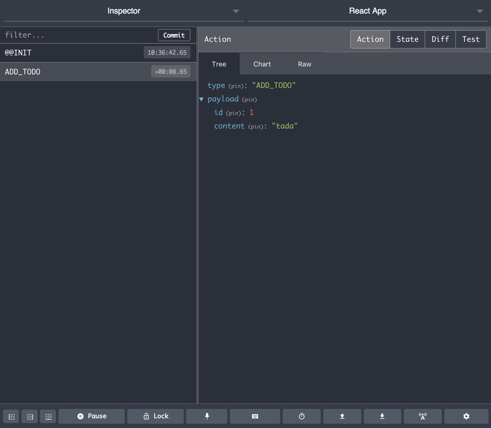 creates the action to set the app’s active filter. It takes a single string variablefilter