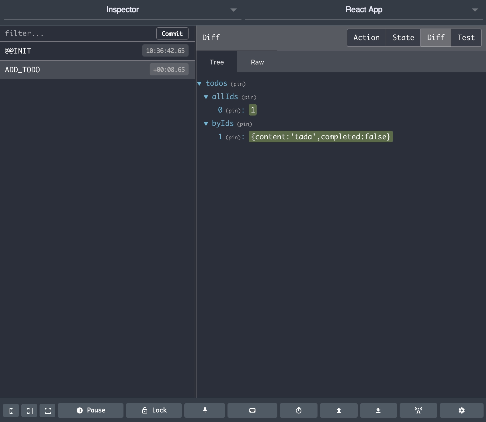 : A normalized reducer of todos. It contains abyIds
