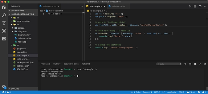 function is asynchronous, we need a callback function to execute when the file is read completely. This function will receive read error (if any) as the first argument and file data as the second argument.