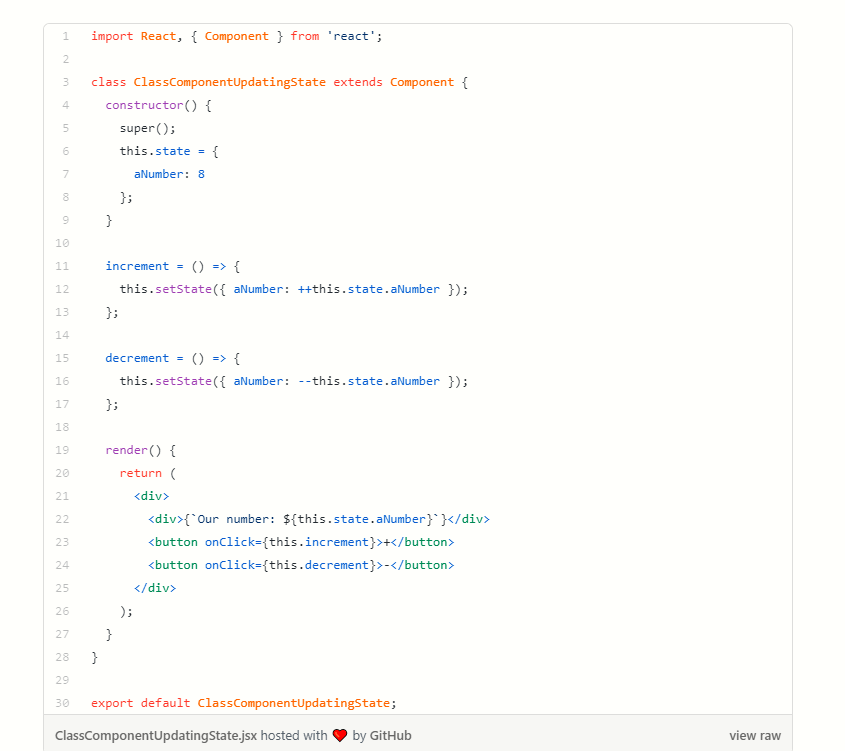 Our class component with state will look a lot like the basic class component we just wrote, but with some exceptions: