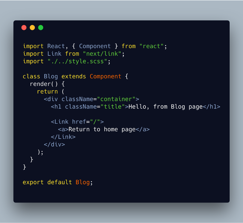 And then you can write a normal React component. As I said above, Next.js is for building React applications.
