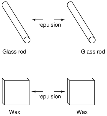 This phenomenon became even more interesting when it was discovered that identical materials, after having been rubbed with their respective cloths, always repelled each other: