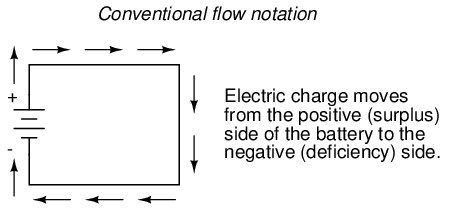 However, because we tend to associate the word "positive" with "surplus" and "negative" with "deficiency," the standard label for electron charge does seem backward. Because of this, many engineers decided to retain the old concept of electricity with "positive" referring to a surplus of charge, and label charge flow (current) accordingly. This became known as conventional flow notation: